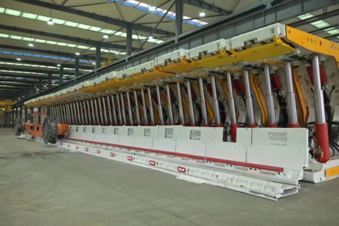 “大家一定要充分發(fā)揮利用好現(xiàn)有資源和團(tuán)隊(duì)優(yōu)勢,在解決‘卡脖子’技術(shù)難題方面取得更多更大突破。”中盤重工公司領(lǐng)導(dǎo)班子到基層調(diào)查研究時(shí)直面問題所在。中盤重工公司始終秉承“讓復(fù)雜地質(zhì)的煤礦更安全更高效開采”的企業(yè)使命,在大傾角、急傾斜液壓支架和刮板輸送機(jī)核心技術(shù)研發(fā)方面持續(xù)發(fā)力,研制的ZY6800/21/45J型急傾斜液壓支架,中心距1.75米,最大采高4.2米,是急傾斜中厚煤層機(jī)械化開采技術(shù)的新突破,2023年12月5日實(shí)施了三機(jī)聯(lián)調(diào)聯(lián)試,獲得礦方高度認(rèn)可。液壓支架突破了在最大傾角52度、最大采高4.2米的高效防倒防滑和安全防護(hù),技術(shù)達(dá)到國內(nèi)先進(jìn)水平。與該支架配套的SGZ800系列刮板輸送機(jī),是公司首臺(tái)套800系列刮板輸送機(jī),應(yīng)用于急傾斜采面尚屬首例,輸送機(jī)采用無鏈、無驅(qū)動(dòng)結(jié)構(gòu)形式,應(yīng)用傾斜工作面的自然條件,實(shí)現(xiàn)煤的自溜運(yùn)輸。